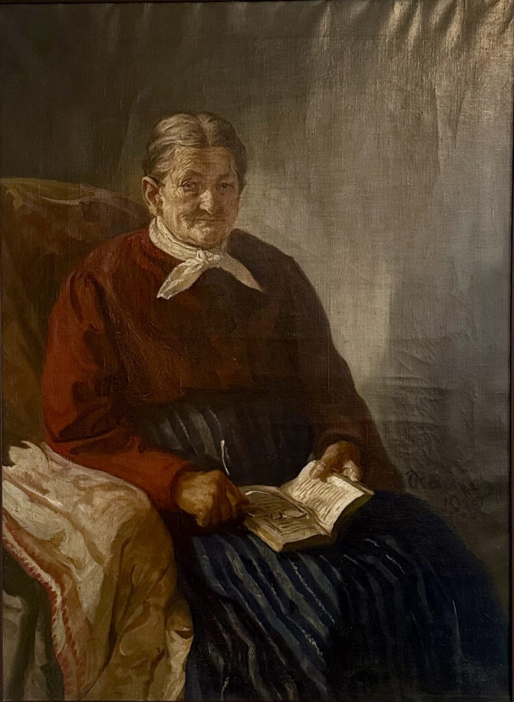 Meine Großmutter Rosalie gebar acht Kinder. Sieben von ihnen starben im Säuglingsalter. Für das letzte gelobte sie, eine Wallfahrt zum Heiligtum der Vierzehn Nothelfer bei Staffelstein zu unternehmen, 50 Kilometer entfernt. Sie rutschte auf den Knien den Berg hinauf, um an jeder Station des Leidensweges unseres Herrn zu beten. Sie hat ihr Versprechen gehalten. Ihr himmelschreiender Glaube wurde gnädig belohnt. Das achte und einzige verbliebene Kind war mein Vater. Wie meine andere Großmutter wurde auch sie von Arthritis geplagt, die sie viele Jahre lang an einen Stuhl fesselte. (Das Bild hängt heute im Schlafzimmer meines Sohnes Felix). In dieser Position malte mein Vater sie, das Bild einer Mutter, die Kummer und Leid überwunden hatte und in einem Zustand tiefen meditativen Friedens bereits die Seligkeit der Ewigkeit genoss. Im Jahr 1915, im Alter von 64 Jahren, gab sie ihre Seele zurück.