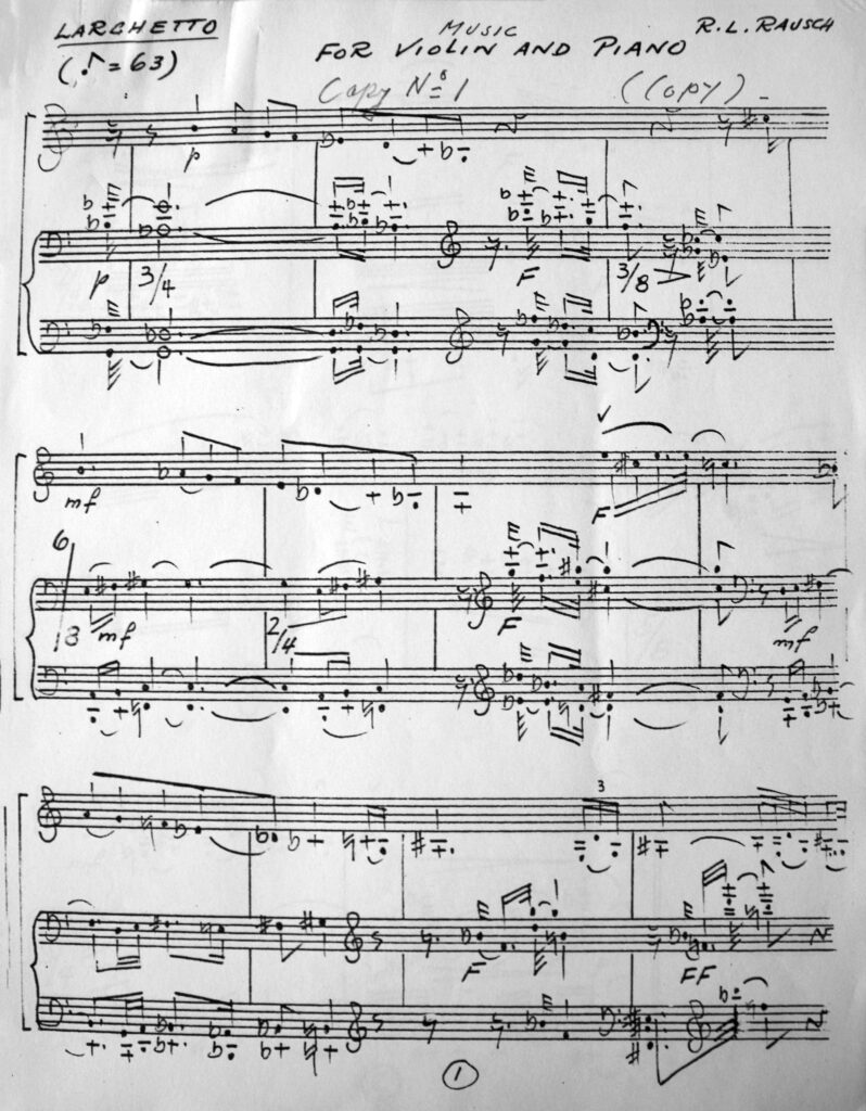 Nach seiner Auswanderung in die Vereinigten Staaten im November 1958 war Rausch vollauf damit beschäftigt, seinen familiären Pflichten nachzukommen und die Integration in ein neues Land zu bewerkstelligen. Obwohl er im Jahr 1973 seine Berufszeit beendete, fand er bis 1975, dem Jahr, in dem er ein Solostück für die Geige schrieb, keine Zeit zum Komponieren. Seine letzte, noch in Deutschland entstandene Komposition stammte aus dem Jahr 1958 – eine unfreiwillige Schaffenspause von 17 Jahren war entstanden. Von den zwölf in Amerika entstandenen Stücken erhielten nur fünf einen Titel. Die Music for Violin and Piano ist eines seiner ausdrucksstärksten Werke – mit wenigen Mitteln arbeitend, jedoch dabei erfinderisch und eigenwillig.